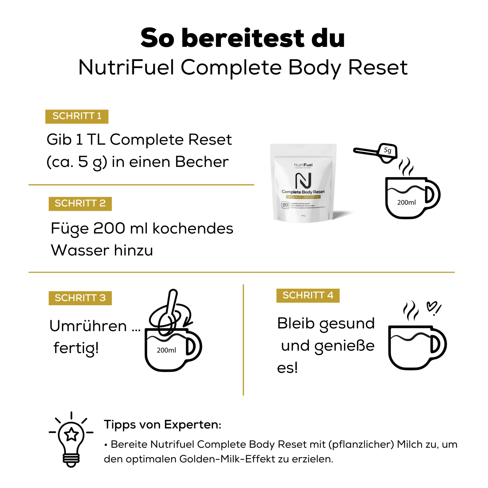 Mit mindestens 3 Beuteln Nutrifuel Complete Body Reset zu starten …