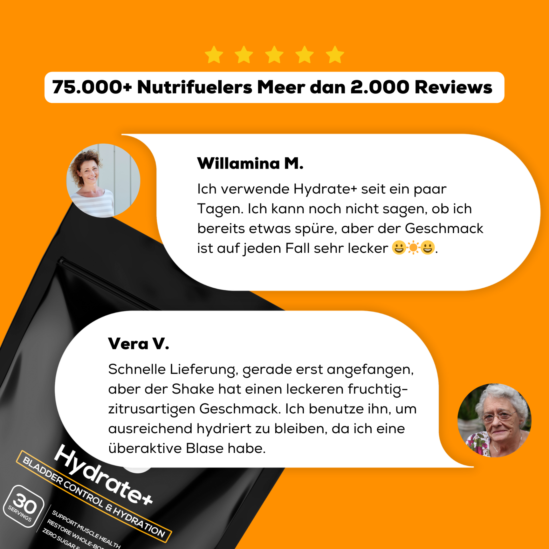 Sobald unsere Kunden Nutrifuel Hydrate+ verwenden und den Unterschied spüren – in ihrem Wohlbefinden, ihrer Energie und Beweglichkeit – möchten sie nie wieder darauf verzichten.
