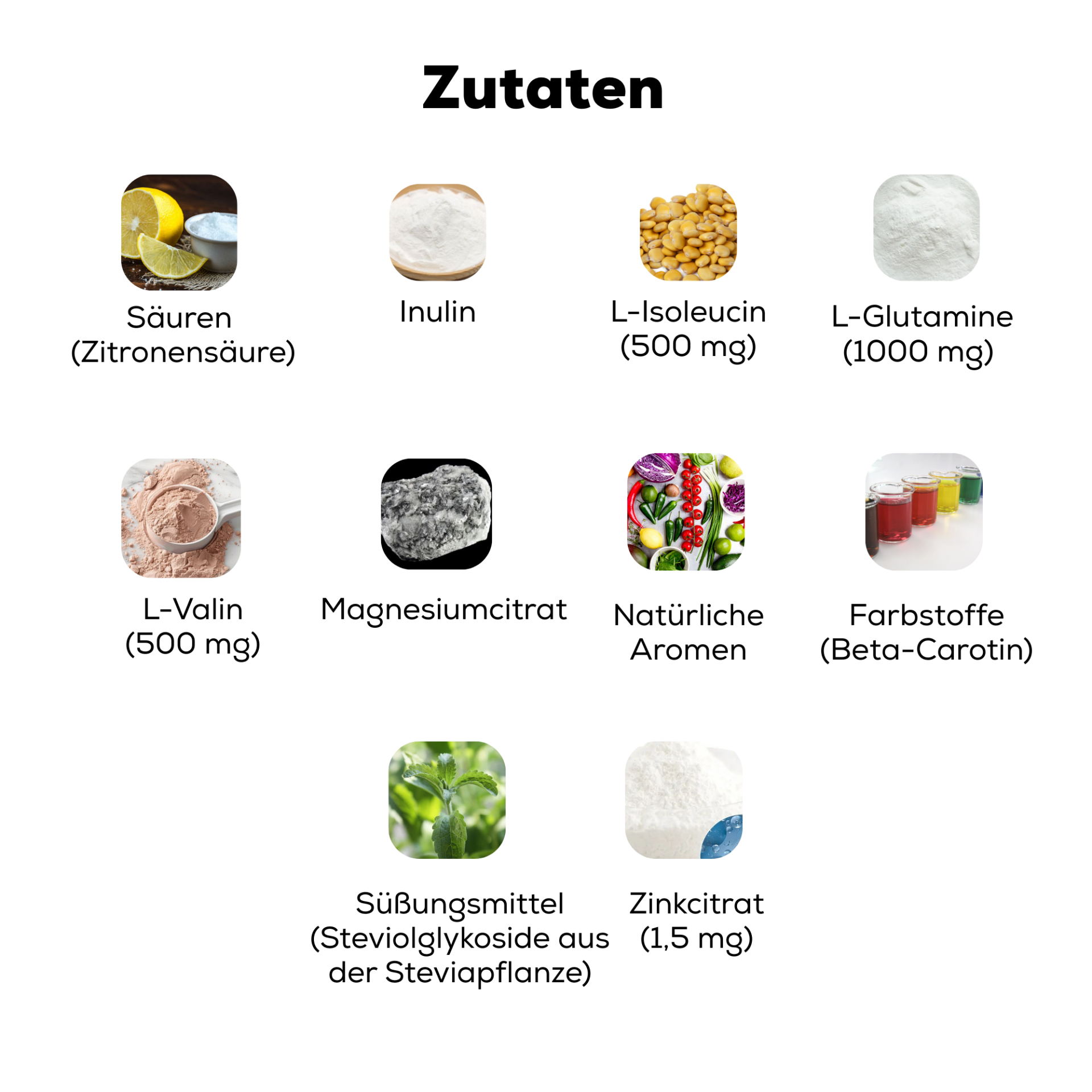 Durch das Hinzufügen von Aminosäuren und Elektrolyten zu deinem Wasser kannst du: